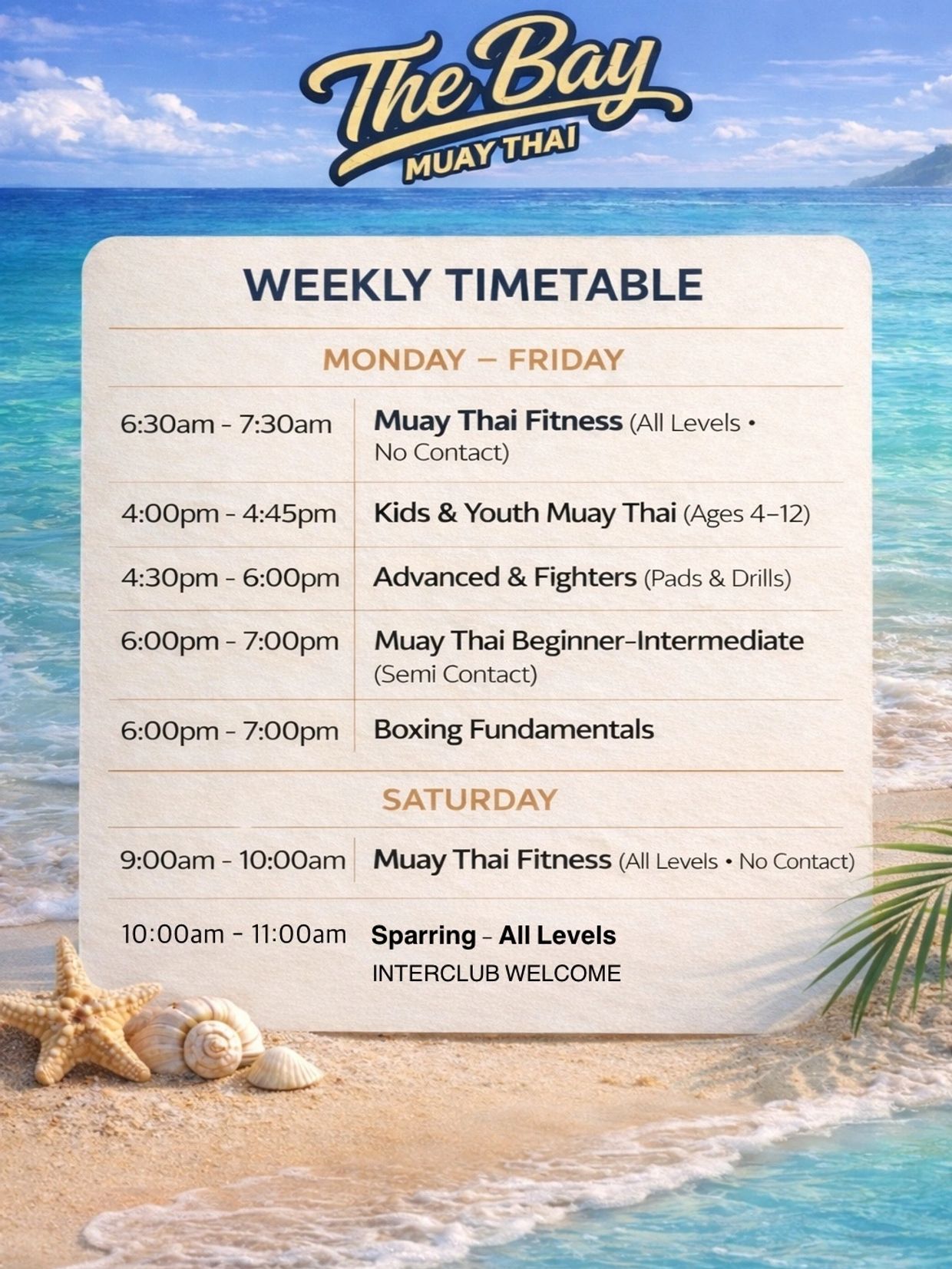 The Advanced & Fighters training block runs from 4:00pm to 6:00pm and is for experienced members and fighters to train harder under the guidance of Eddie Farrell. For students focused on competition. Includes advanced pad work, cornering and fight preparation, style development, career guidance/opportunities. Sessions typically include a group run on our beach loop or sprint-based conditioning, followed by hand wrapping together, shadowboxing, pad work/bag work, and a rotating mix of clinching, controlled sparring, and technical drilling. Sessions conclude at 6:00pm.
